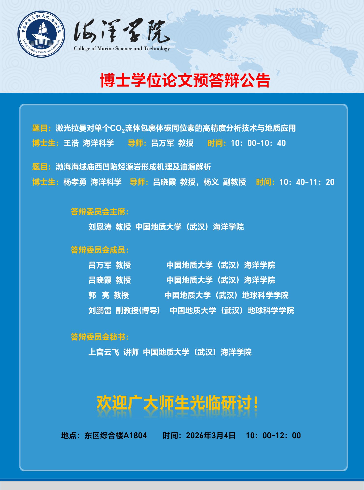 2026年春博士学位论文预答辩公告(3月4日)