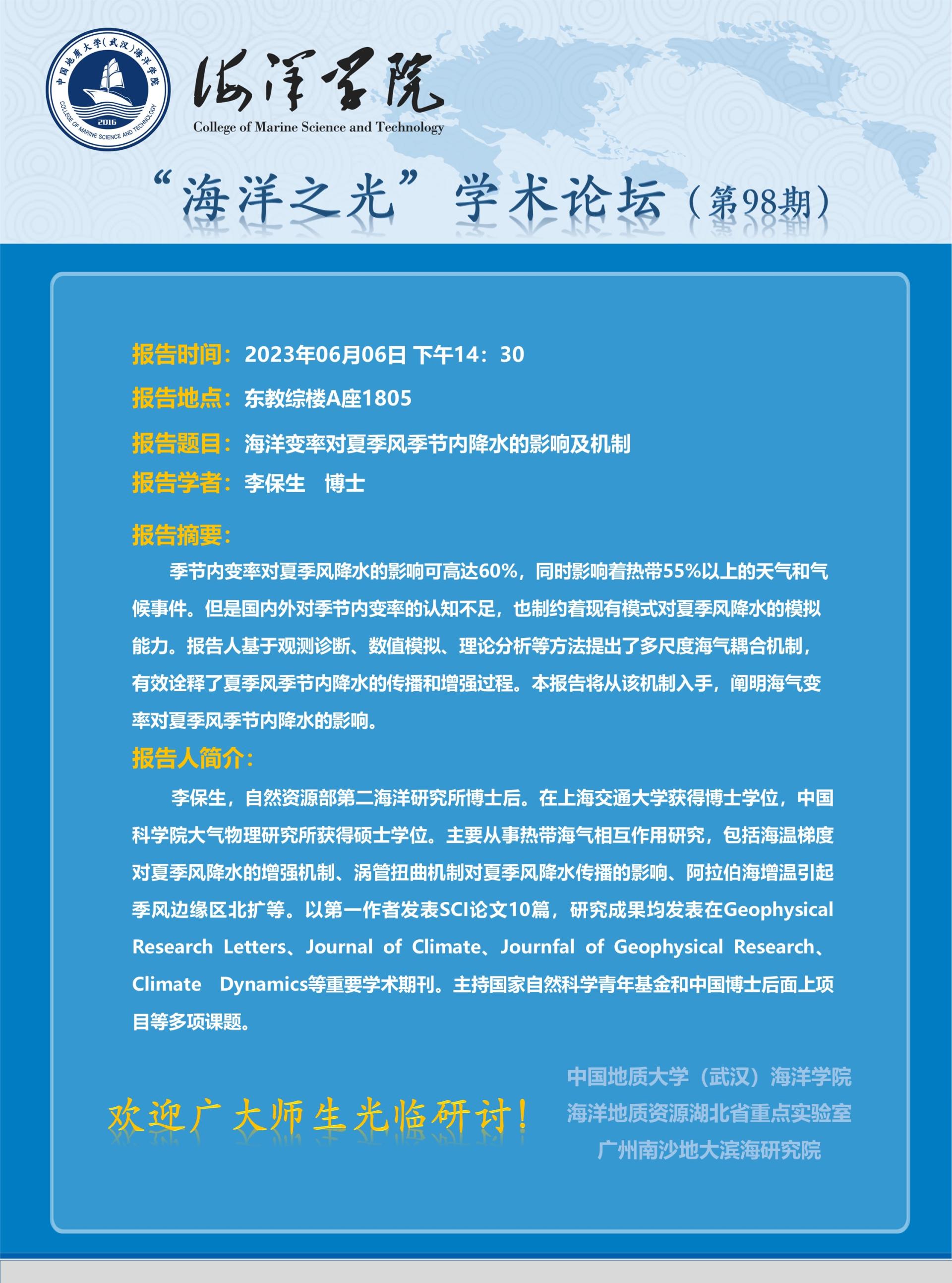 “海洋之光”学术论坛(第98期)——李保生