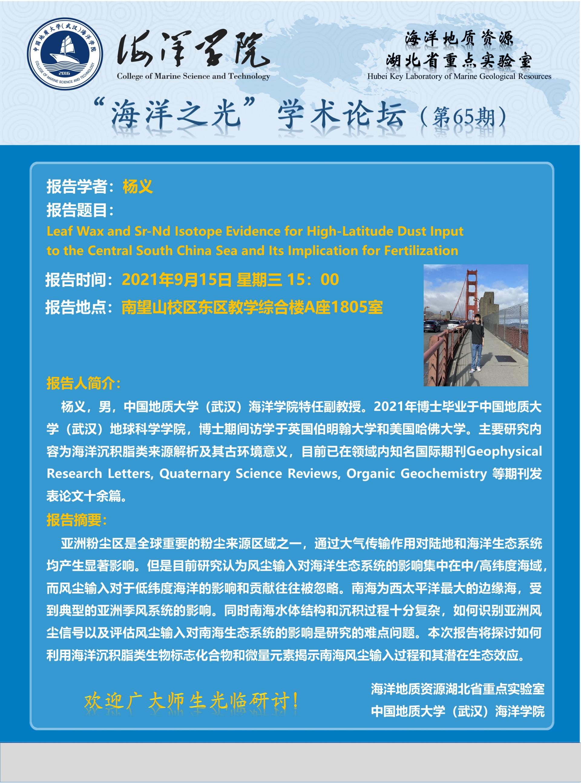 “海洋之光”学术论坛(第66期)——匡洋民