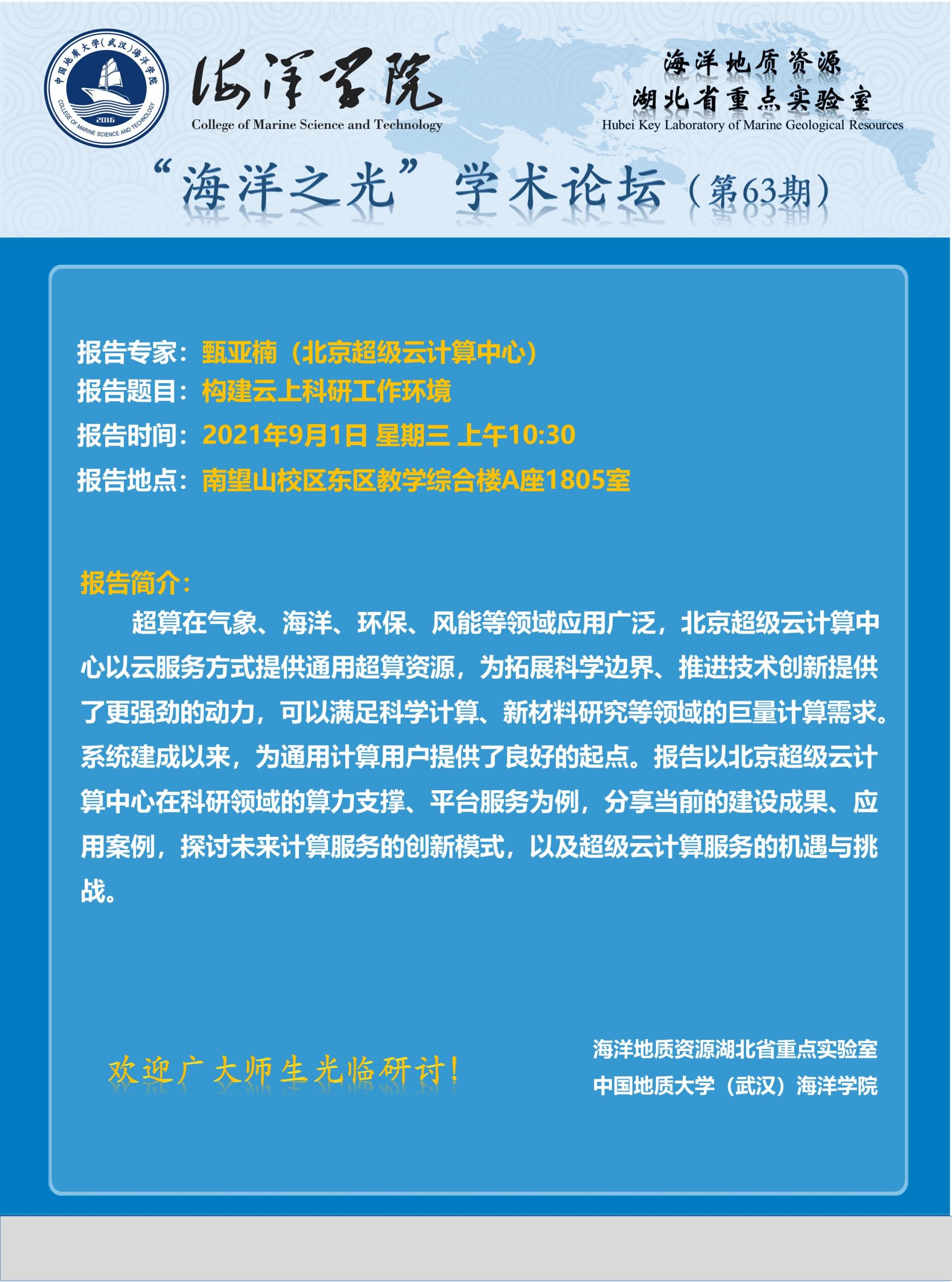 “海洋之光”学术论坛(第63期)——甄亚楠