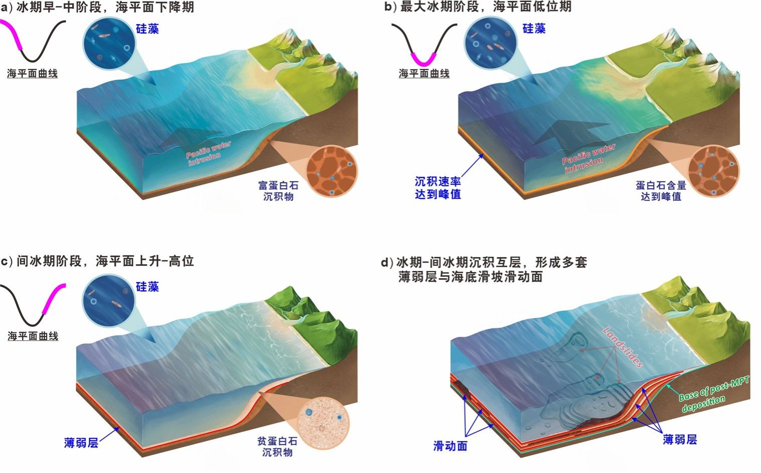 图1 南海北部陆缘中更新世气候转型以来海底薄弱层沉积模式图