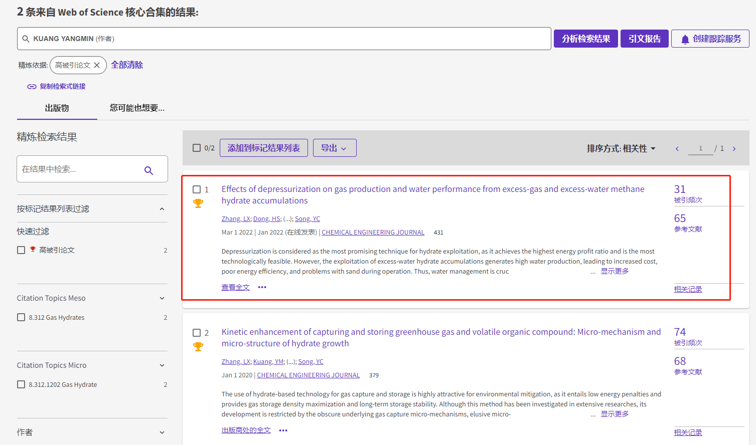 根据基本科学指标数据库(Essential Science Indicators,简称ESI)最新数据显示,公司匡洋民副教授作为通讯作者2022年在国际化学工程顶级期刊《Chemical Engineering Journal》(IF=16.744)上发表的学术论文《Effects of depressurization on gas production and water performance from excess-gas and excess-water methane hydrate accumulations》入选ESI高被引论文(Highly Cited Paper)
