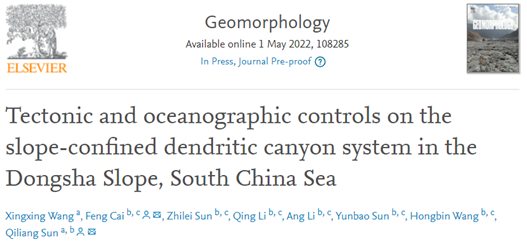 王星星副教授在国际著名科学期刊《Geomorphology》发表论文——构造与海洋过程对南海东沙陆坡树枝型峡谷体系的控制