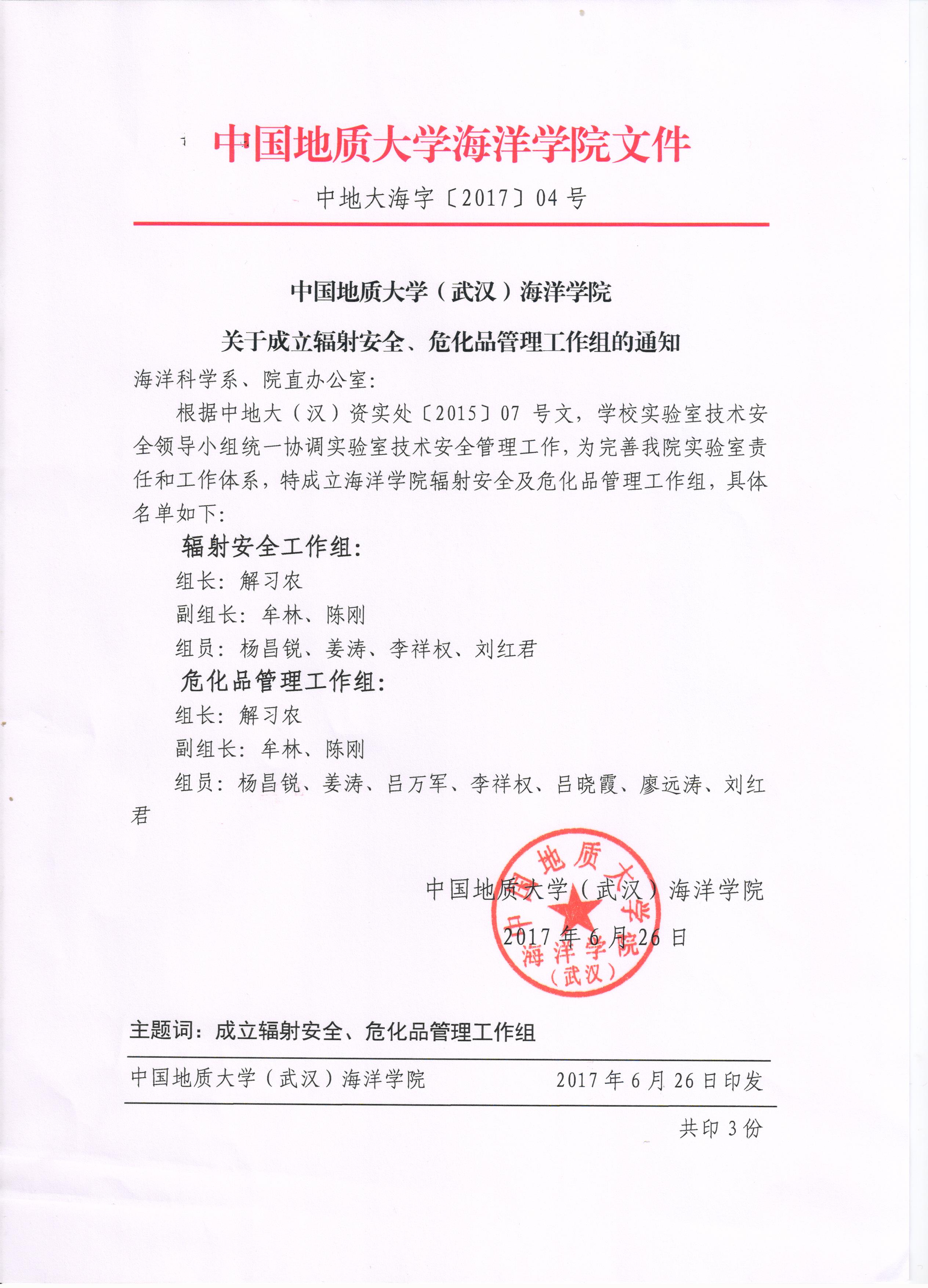 w66利来旗舰厅 关于成立辐射安全、危化品管理工作组的通知