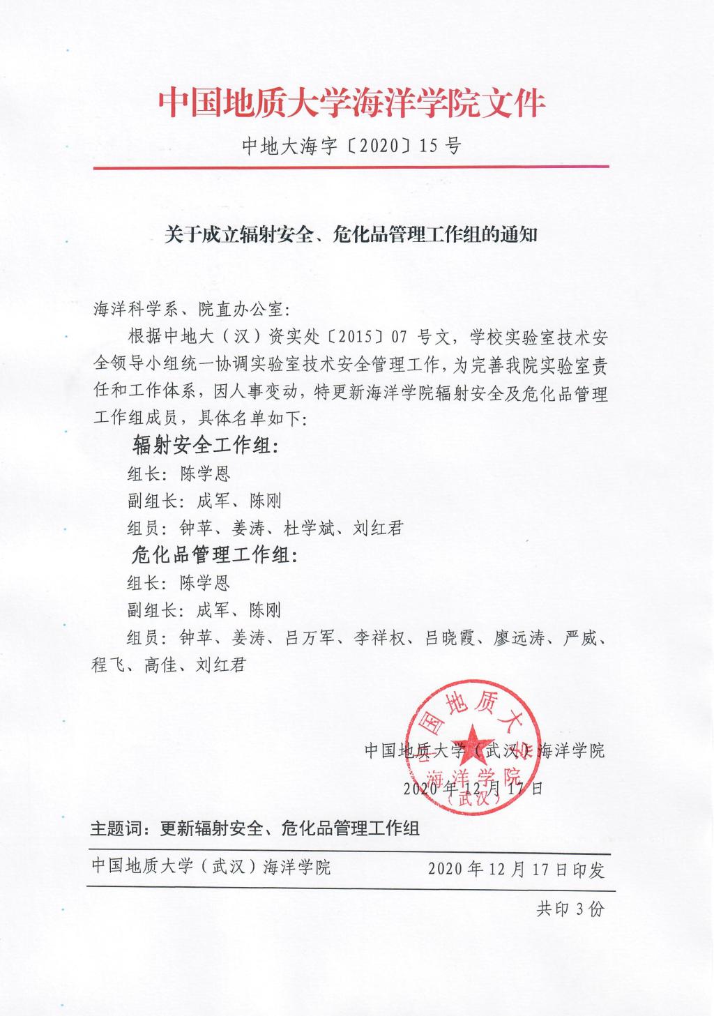 w66利来旗舰厅成立辐射安全、危化品管理工作组