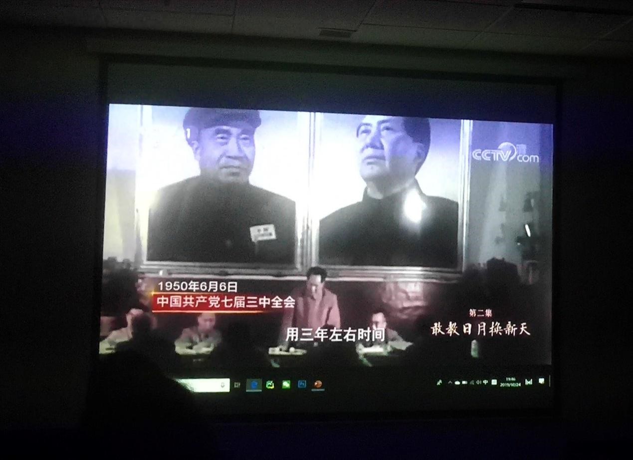 最后陈刚老师和大家一起观看了影片《我们走在大路上——敢教日月换新天》,党员和积极分子交流了观影心得,感叹新中国成立初期破旧立新的伟大勇气和伟大决断,也感恩共产党人为人民群众做出的伟大牺牲。