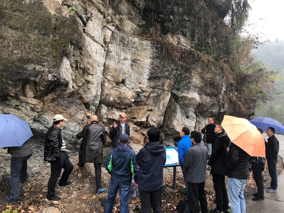 11月24日上午,冒着霏霏细雨,全体与会教师赴三斗坪-花鸡坡-九龙湾野外教学路线开展现场教学研讨。在各个地质现象观察点,副经理王家生教授系统地介绍了该路线出露的地层单元岩性特征、沉积构造和成因机制,生动阐释了该区地质环境变迁过程和科学研究意义。参与教学研讨的各位老师认真的听取王家生老师的讲解,并就所观察到的各种地质现象展开了热烈的交流和研究。
