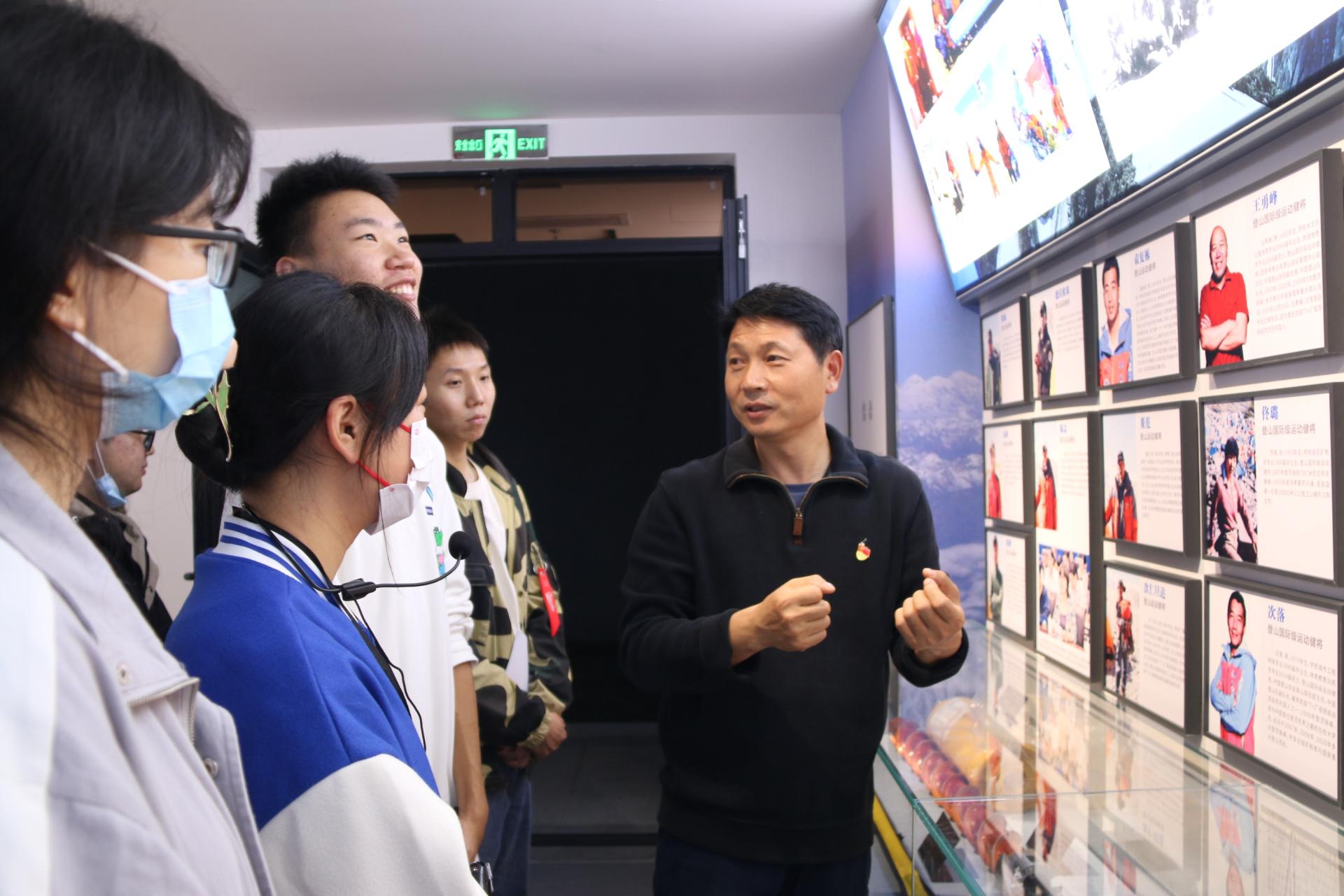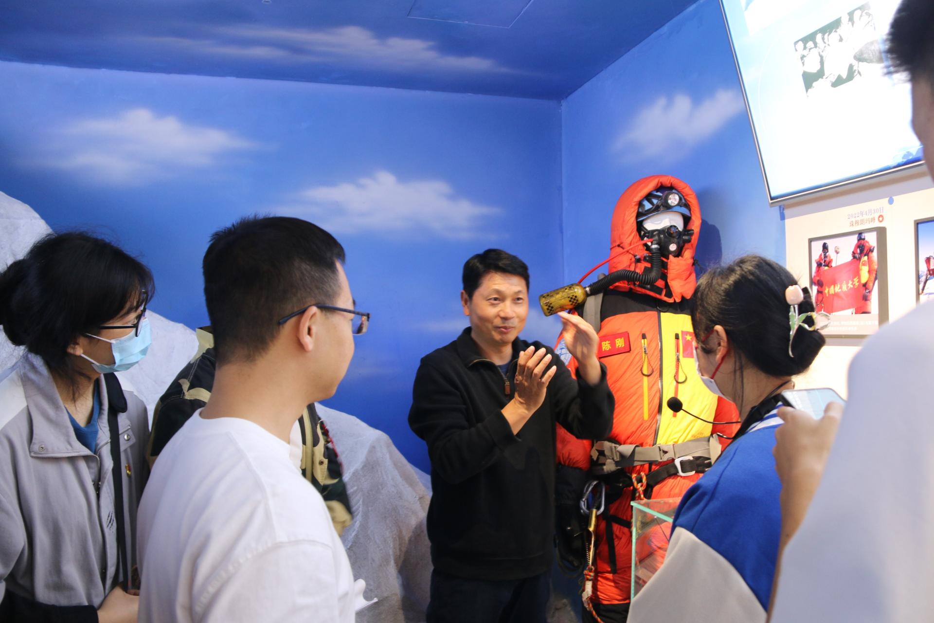 今年4月,陈刚教授为践行习近平生态文明思想,又一次登上珠峰实地考察并成功登顶。当来到登山专题展厅时,陈刚教授介绍了自己捐赠展厅的各种展品,讲述了诸位员工攀登珠峰过程中的各种事迹。陈刚教授勉励同志们鼓励党员同志们要突破自我,发扬“不畏艰险、顽强拼搏、团结协作、勇攀高峰”的精神,在党支部建设中传承和发扬。