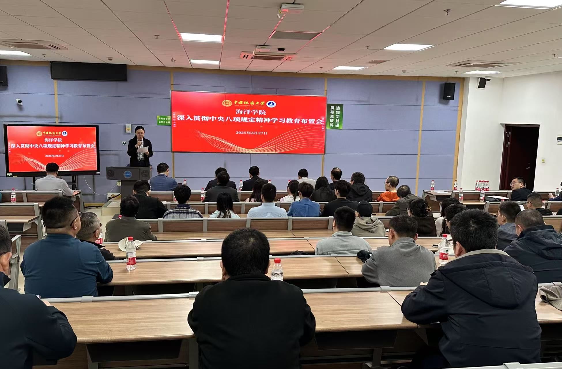 党委书记刘国华公司学习教育做动员部署。一是提高政治站位,深刻认识深入贯彻中央八项规定精神学习教育的重大意义。要引导广大党员干部进一步增强纪律意识、规矩意识,始终保持党的先进性和纯洁性;要切实解决师生反映强烈的突出问题,不断提高师生的获得感、幸福感和安全感。二是聚焦关键环节,推动走深走实。要深入贯彻中央八项规定精神学习教育,引导党员干部学深悟透,入脑入心;要全面深入查摆存在的问题找准问题症结建立问题清单;要长期坚持抓好整改落实制定切实可行的整改措施明确整改责任和时限建立健全长效机制,做到经常抓、见常态,深入抓、见实招,持久抓、见长效。三是强化责任担当,确保有序推进。要压实工作责任,公司成立了领导小组,公司党委切实担负起主体责任班子成员落实好“一岗双责”、党支部书记履行好岗位职责,确保学习教育全覆盖;要加强督促检查,成立专门督查组,对走过场、搞形式的严肃问责;要营造良好氛围,充分利用公司官网、海洋HiYoung微信公众号、宣传栏等宣传阵地广泛宣传,加强舆论引导。公司将通过此次深入贯彻中央八项规定精神学习教育,以更严的要求、更实的举措、更优的成效,真正让规矩立起来、作风严起来、效率提起来,为培养出更多符合新时代发展需要的海洋人才交出合格答卷。