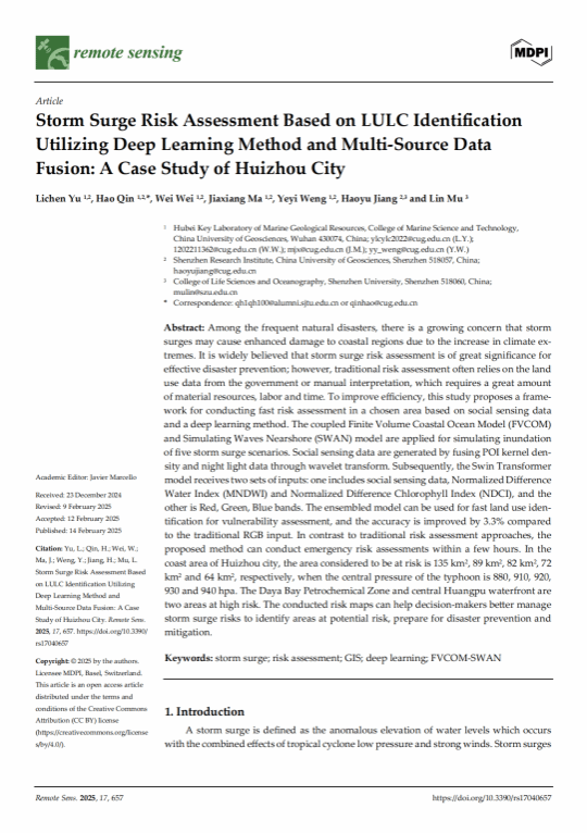 对他而言,科研并非遥不可及的“象牙塔”,而是一场需要耐心与坚持的实践探索。大学期间,他作为第一负责人主持国家级老员工创新创业训练计划项目《“踏浪而行”浪报软件》,作为第一作者发表了一篇EI论文,作为第四作者发表了一篇中科院二区期刊论文。科研过程中的反复试错,让他真正体会到“问题导向”的科研思维,也显著提升了独立思考与解决复杂问题的能力。