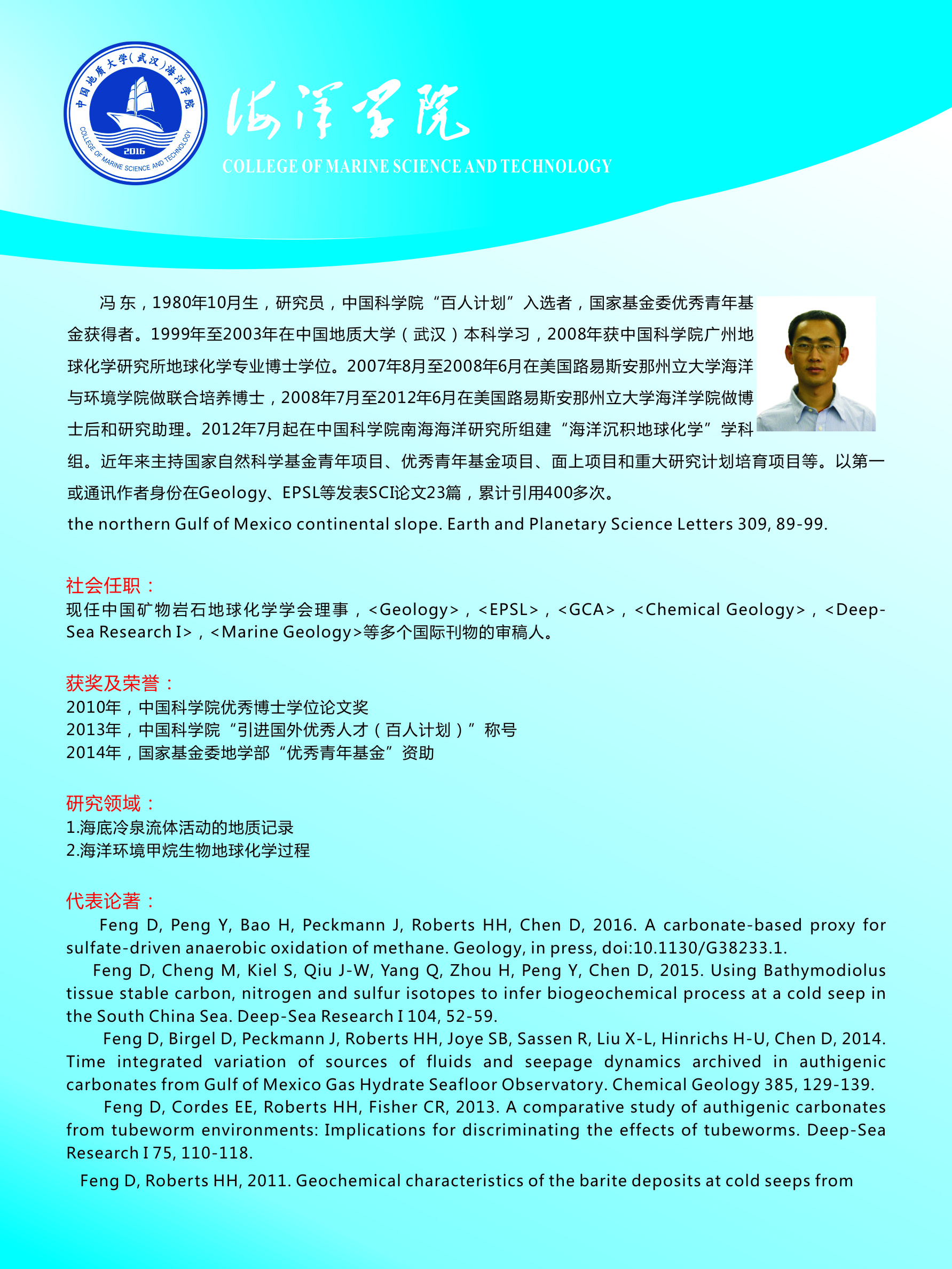 (通讯员:曾程辉)10月22日,应海洋系主任吕万军老师邀请,中国科公司南海研究所研究员冯东老师于w66旗舰厅官网(武汉)丝绸之路公司105教室召开《未来能源与海底生命》与《海底冷泉流体活动及其地质记录》课题的报告。