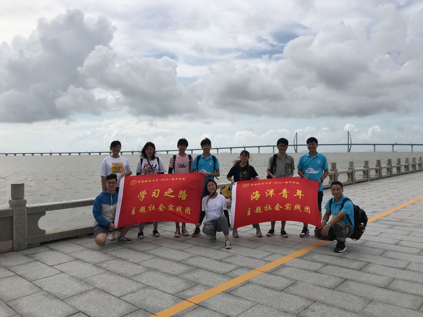 7月6日,w66利来旗舰厅主题社会实践团来到港珠澳大桥,近距离感受祖国伟大的海洋交通基础建设。