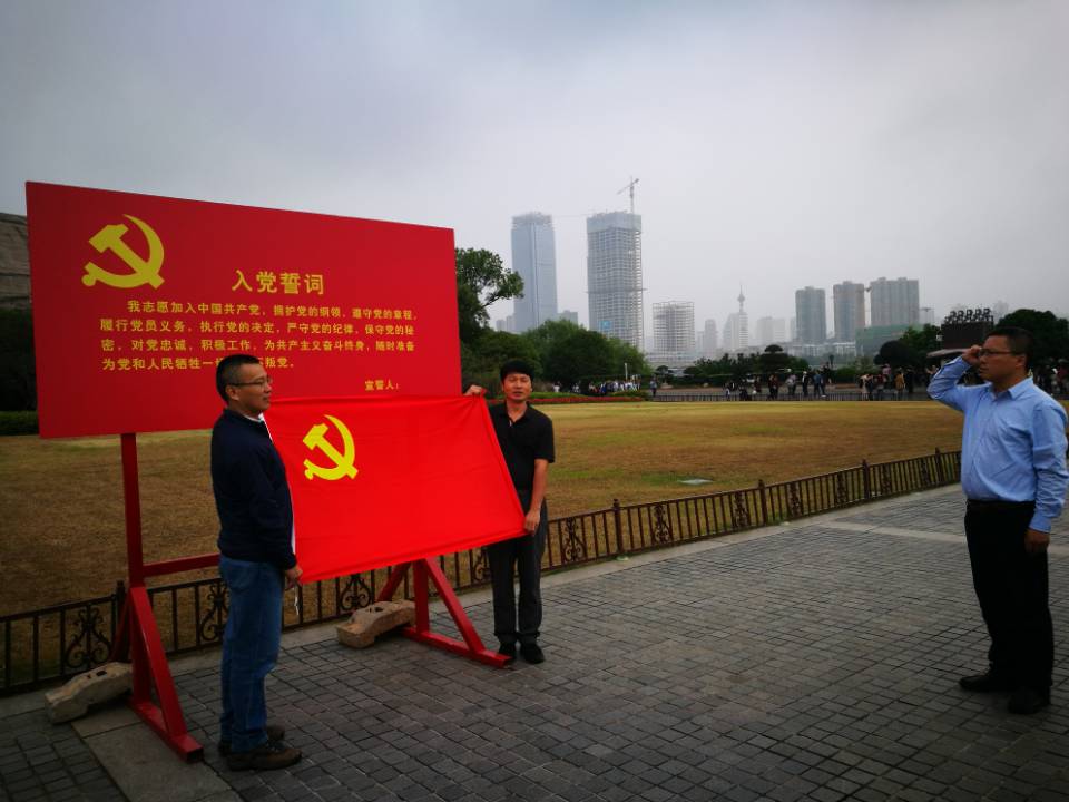 在毛泽东青年艺术雕塑前,公司全体教师党员整齐列队,由公司党委书记成军同志领誓,面向党旗庄严宣誓,重温入党誓词,追问入党初心。各党支部也分别在塑像前进行了重温入党誓词活动。