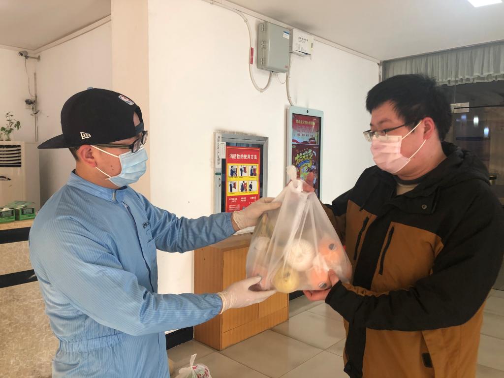 3月17日下午,留校员工党支部组织委员马晓晨协同留校员工党员将2018级研究生党支部为留校员工捐款筹资购买的爱心水果分发给了因疫情防控滞留公司的58 名员工。