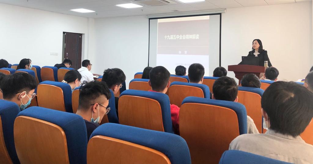 2020年11月13日下午,海洋公司党委副书记钟苹于东教A座1805会议室为公司员工党员上“十九届五中全会精神解读”专题党课。