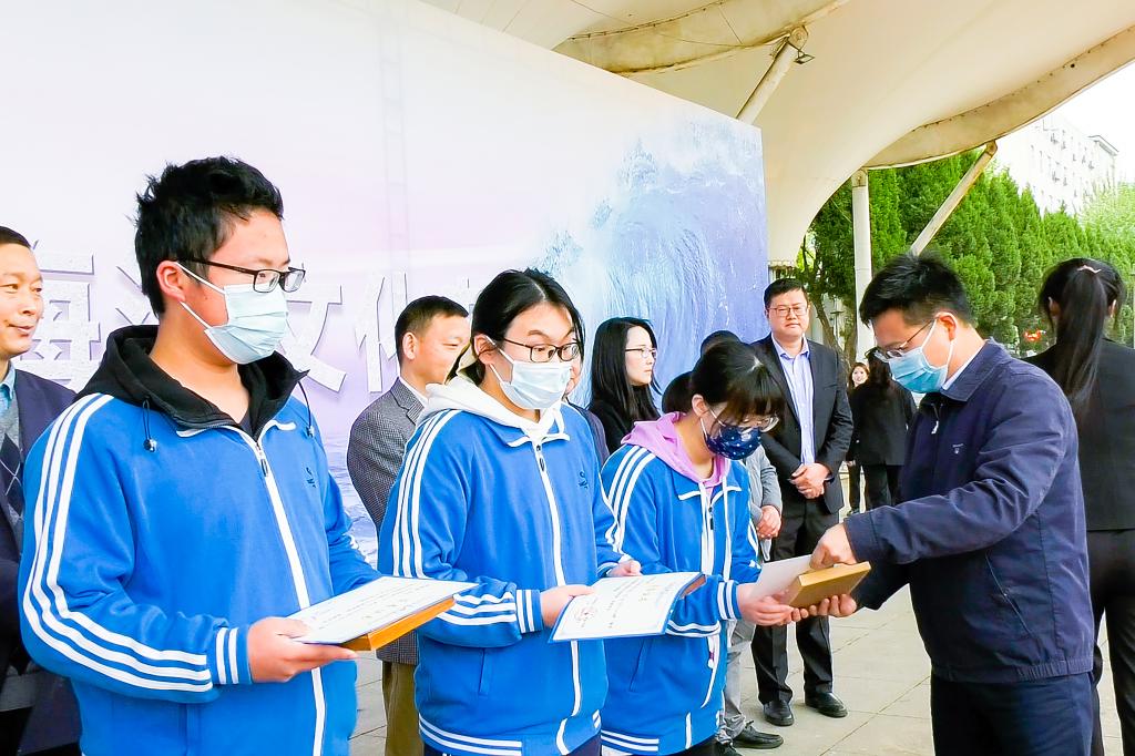开幕式环节,w66旗舰厅官网(武汉)团委书记朱荆萨为w66利来旗舰厅“科海扬帆,逐梦深蓝”海洋文化科普宣讲团授旗;教务处张建和副处长宣布w66旗舰厅官网2021年“HiYoung杯”海洋知识竞赛正式开赛;学工处朱继副处长为武汉市第十四中学海洋知识竞赛获奖员工颁奖。