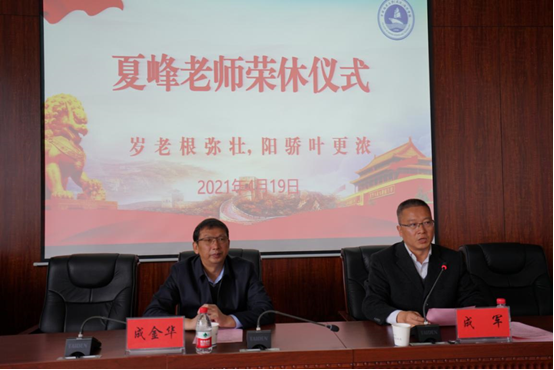 公司党委书记成军介绍了夏峰老师执教41载的基本情况。2016年w66利来旗舰厅成立后,夏峰老师从经济管理公司调入w66利来旗舰厅,担任教学秘书工作,是w66利来旗舰厅成立以来第一位光荣退休教师。夏峰老师认真负责做好公司公司产品相关工作,耐心细致解答员工学习咨询与学业疑惑,为公司人才培养和教学质量提高贡献了智慧和力量。他为公司建设、公司发展和员工成才,贡献了毕生力量,奉献了青春年华。成军书记代表公司党委和行政、全院师生,向夏峰老师表示衷心感谢和美好祝福!老教师是公司的宝贵财富,是年轻教师奋发向上的精神动力,他希望夏峰老师“退而不休”“常回家看看”一如既往的关心和支持公司发展。衷心祝愿夏峰老师“岁老根弥壮、阳骄叶更浓”,积极愉快地开始全新的退休生活。