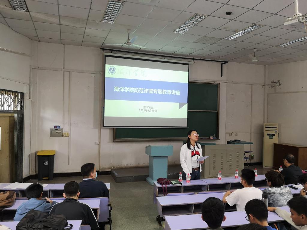 4月30日,w66利来旗舰厅在西区教三208教室召开防范诈骗专题教育讲座暨五一假前安全稳定工作布置会。武装部、保卫处处长代清风,海洋公司党委副书记钟苹,武装部、保卫处、w66利来旗舰厅相关老师出席本次会议,w66利来旗舰厅全体员工参加。会议由钟苹副书记主持。
