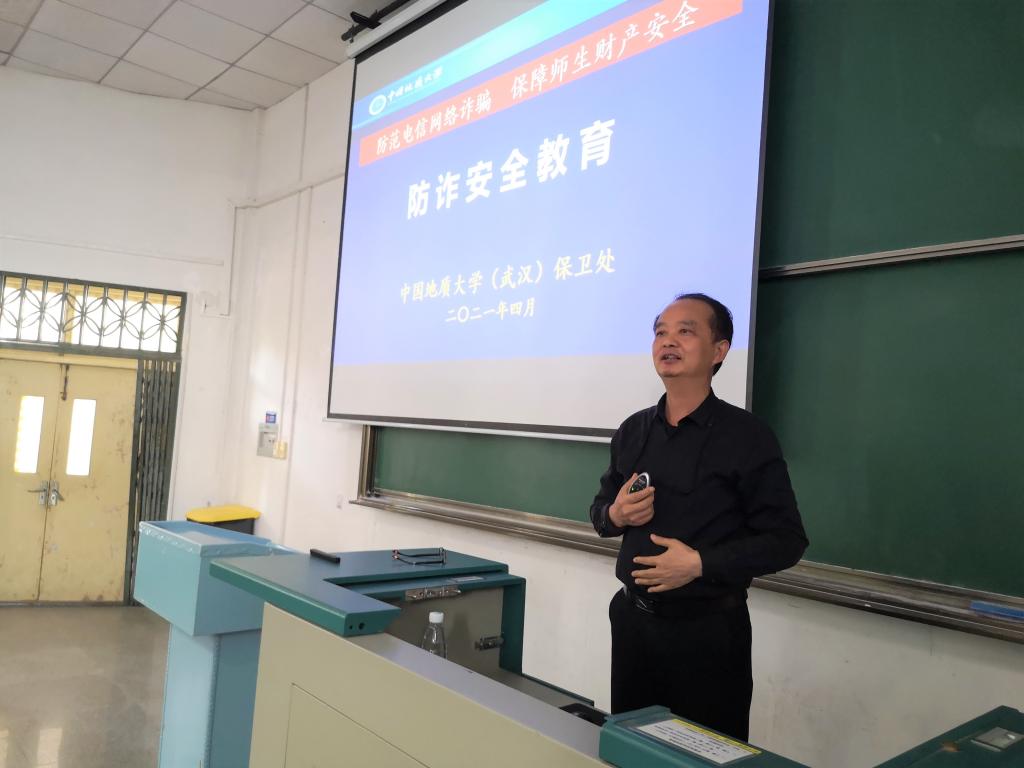 代清风以“防范电信网络诈骗,保障师生财产安全“为题为w66利来旗舰厅师生做专题防诈安全教育。他结合2021年度公司诈骗案件的发案情况通报,指出当前公司诈骗防范情况不容乐观,并通过对代表性案件的分析,向同学们介绍了电信诈骗常用的手段和方式。他提醒同学们道:“诈骗的手段很多、且花样不断更新,但其核心就是‘一个目标,两个中心’,以‘诈’让你恐惧”, 靠‘骗’让你相信,骗‘钱’为最终目的,大家只有清晰的认识了诈骗的真面目,才能真正远离电信诈骗的圈套。”