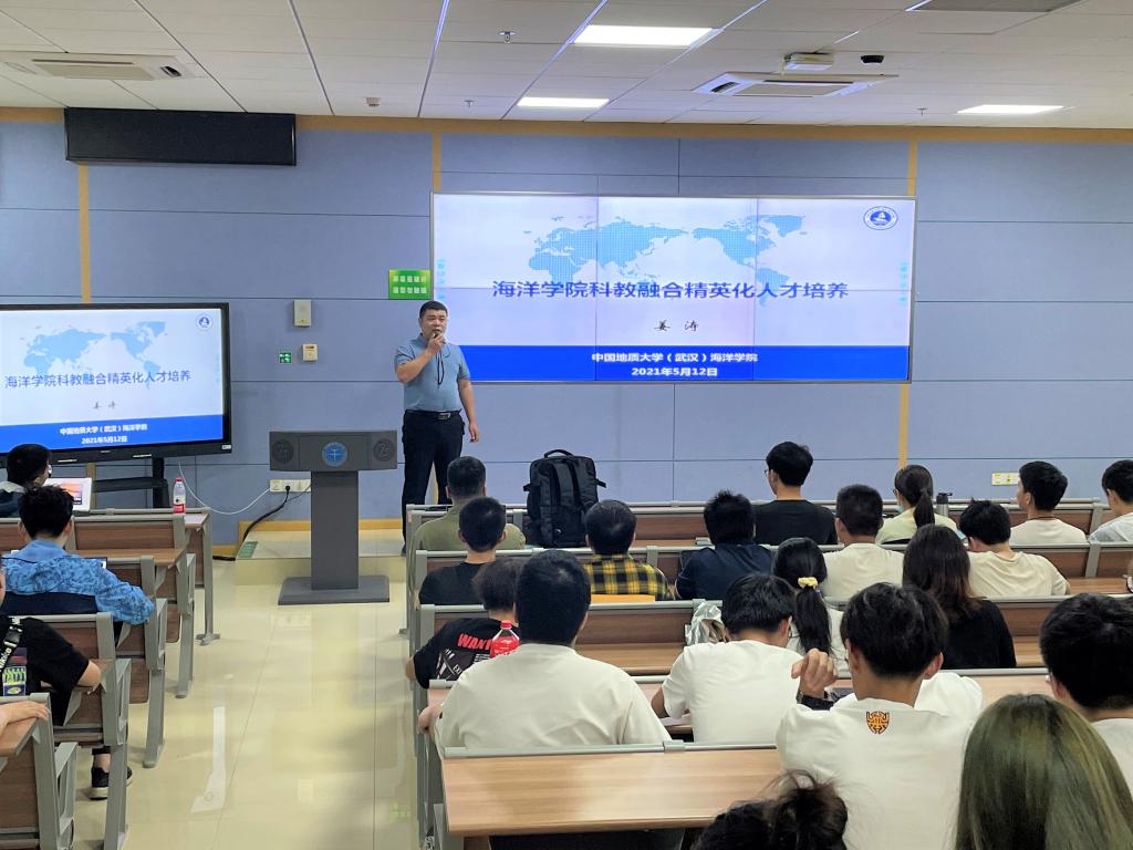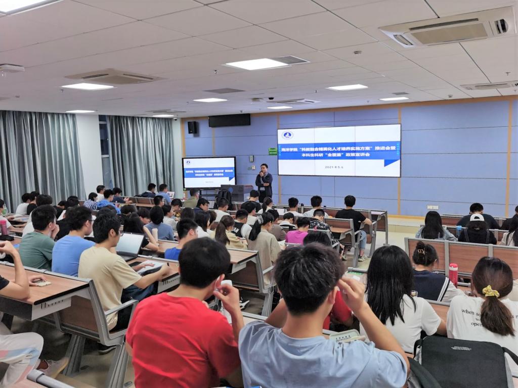 陈杨就同学们关心的“本科生能参加哪些科研活动?”问题,为大家做“w66利来旗舰厅本科生科研日历”介绍。为同学们梳理了校院相关的推免计划、科研立项项目,重点介绍了海洋学子在校不能错过的专业赛事。并勉励大家依托公司导师制政策,充分用好“w66利来旗舰厅导师制管理系统”线上资源,让导师制真正服务自身的成长成才。