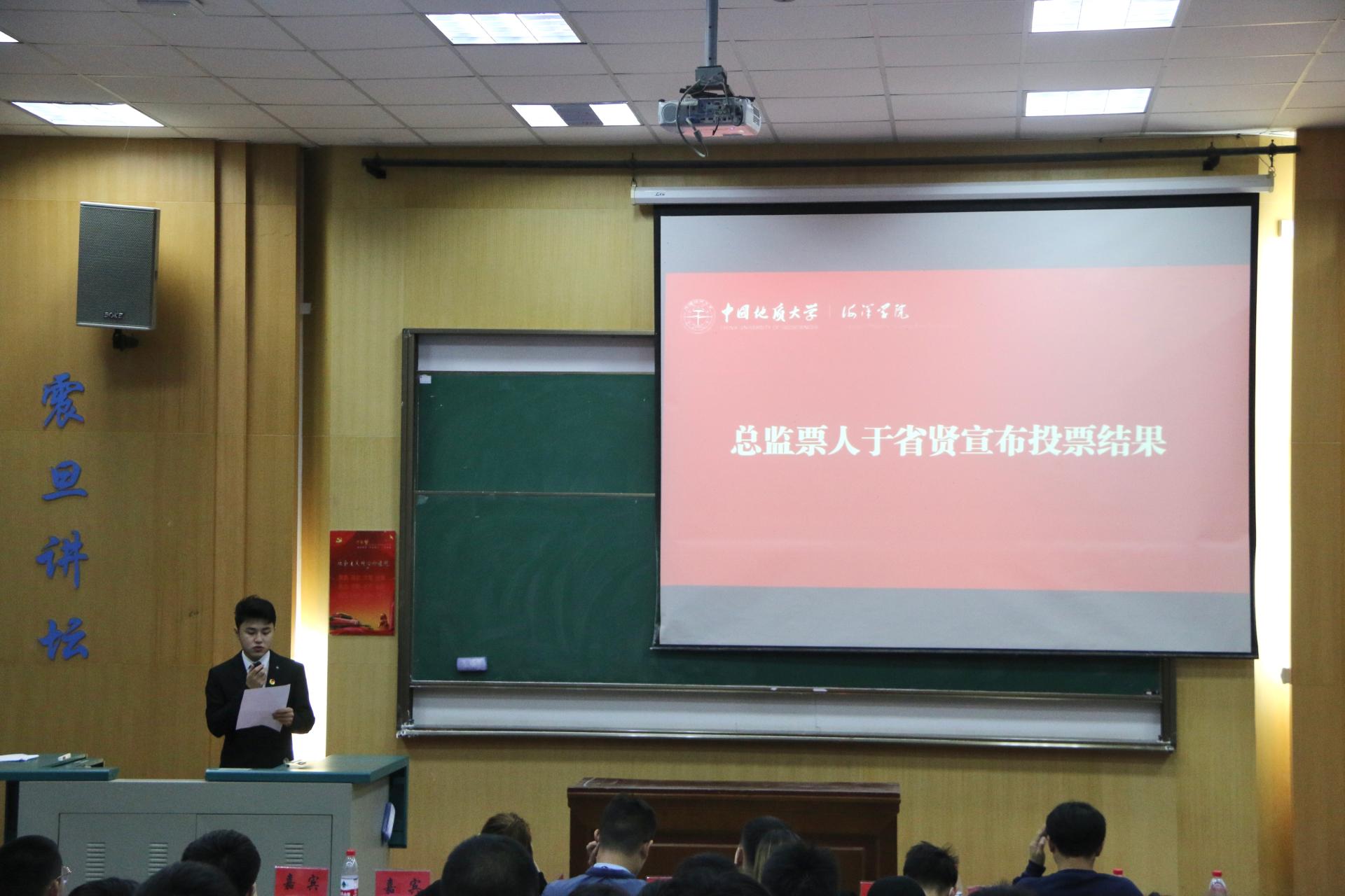与会员工代表填写选票并投票。全体与会人员投票选举出w66利来旗舰厅第五届员工委员会常务委员10名,以及w66利来旗舰厅员工会主席团成员5名,团委副书记1名。由总监票人于省贤向全体与会代表公布选票的计票情况。