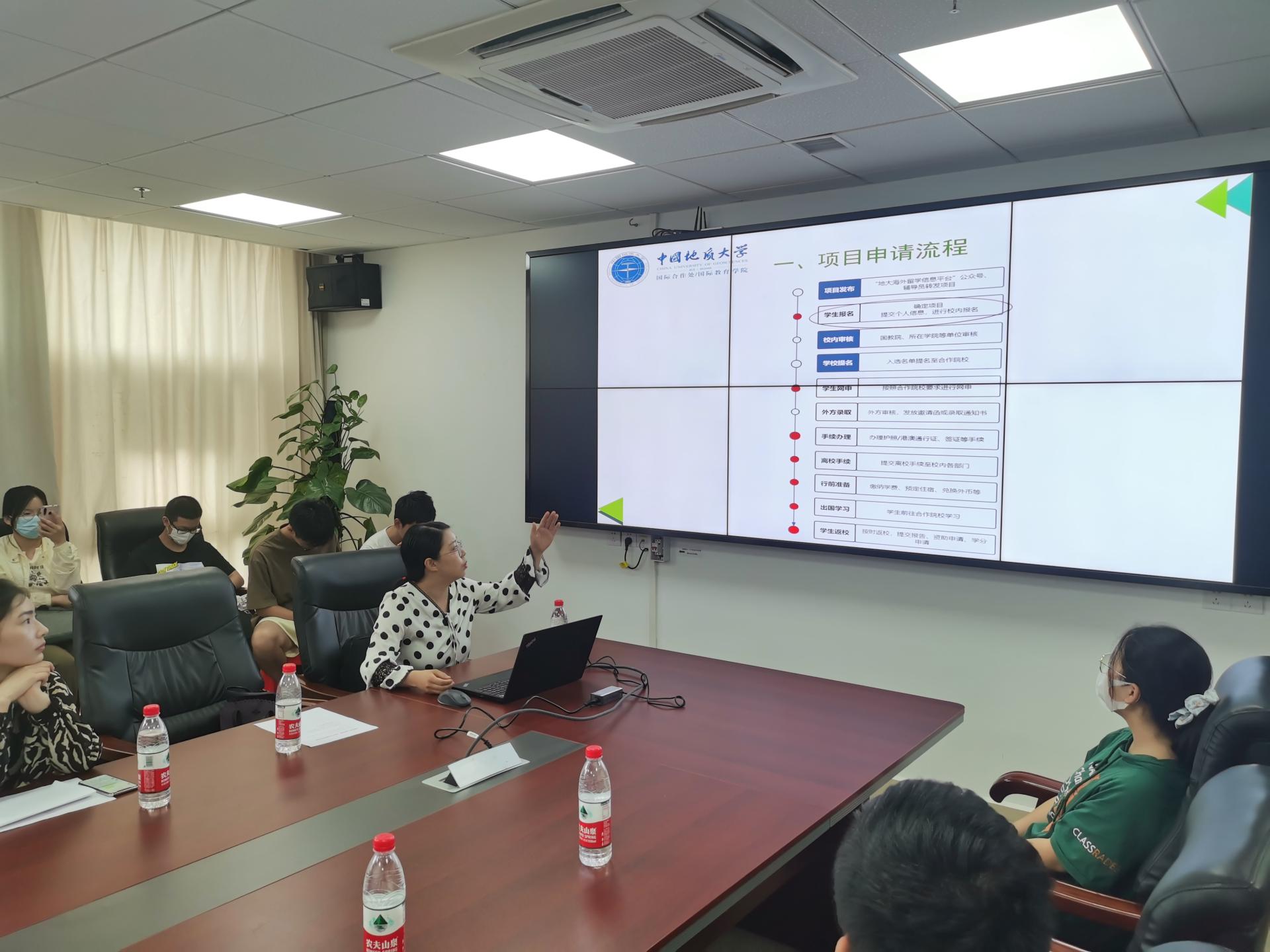 李雅莉将申请海外实习实践的流程、政策一一向大家讲解。列出了详尽步骤,展示了众多细节。完备的资助体系作为一大重点,成为特别关注部分。