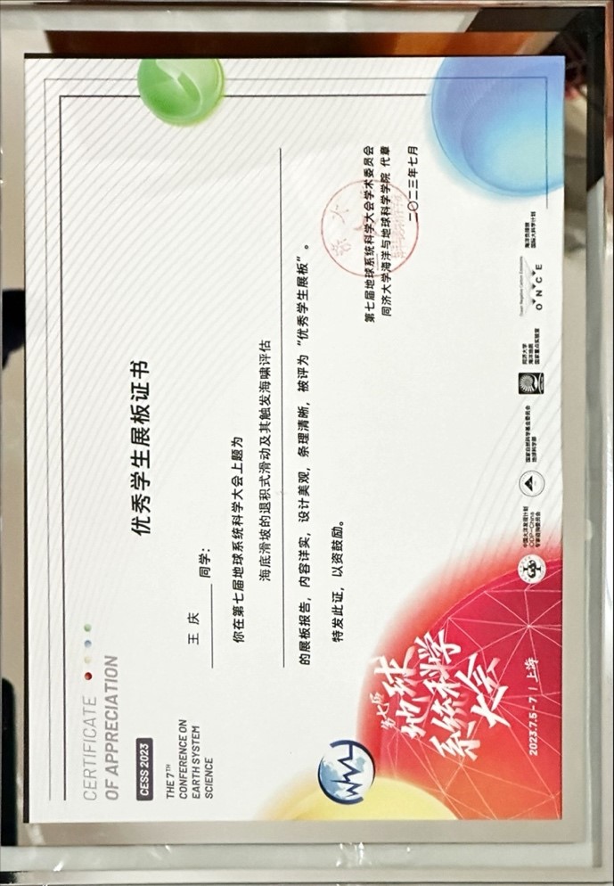 2023年7月5日至7日,为期3天的第七届地球系统科学大会在上海召开。公司博士生王庆以其出色的展板报告在564份员工展板中脱颖而出,荣获“优秀员工展板奖”,是w66旗舰厅官网(武汉)唯一获奖员工。他的报告题为“海底滑坡的退积式滑动及其触发海啸评估”,由孙启良教授指导。