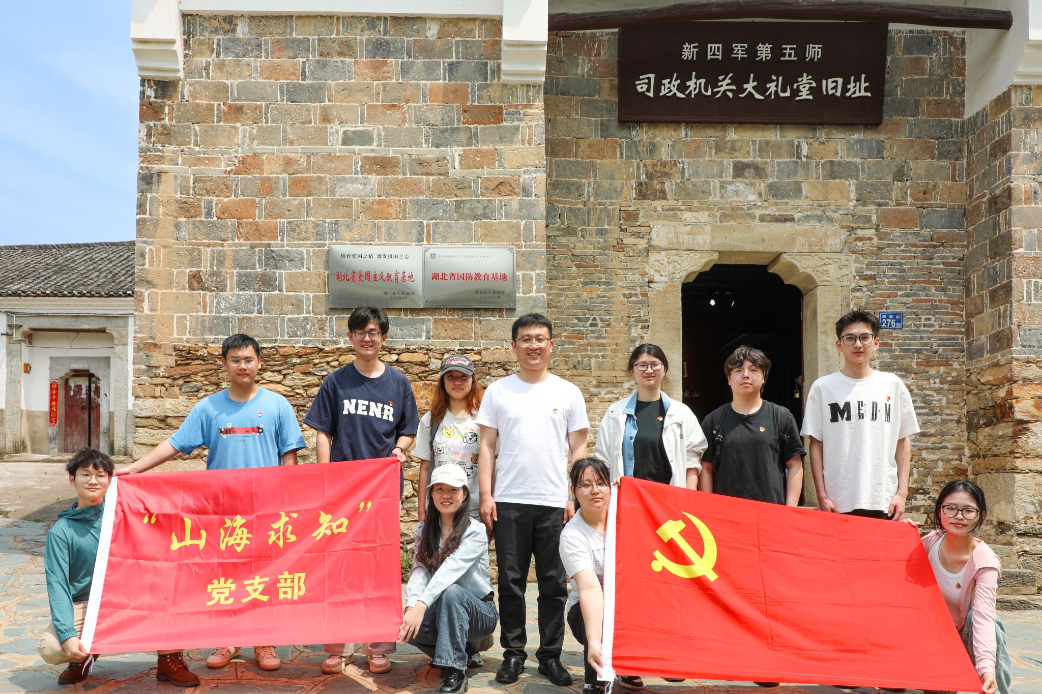 师生在新四军第五师历史陈列馆前合影