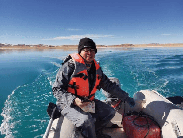 2023年10月西藏藏北无人区盐湖科考,在湖上驾船取样