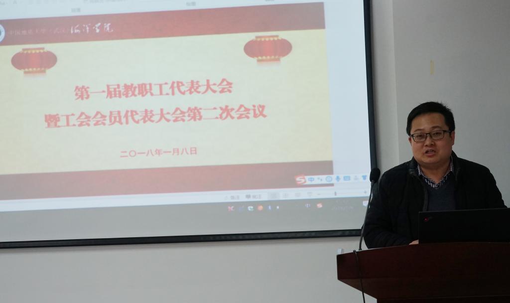 20181月8日,w66旗舰厅官网武汉)海洋公司第一届教职工大会第二次会议暨第一届工会会员大会第二次会议在丝绸之路公司105隆重开幕,会议由公司党委书记解习农同志主持,工会副主席高复阳同志到会祝贺并致贺词。