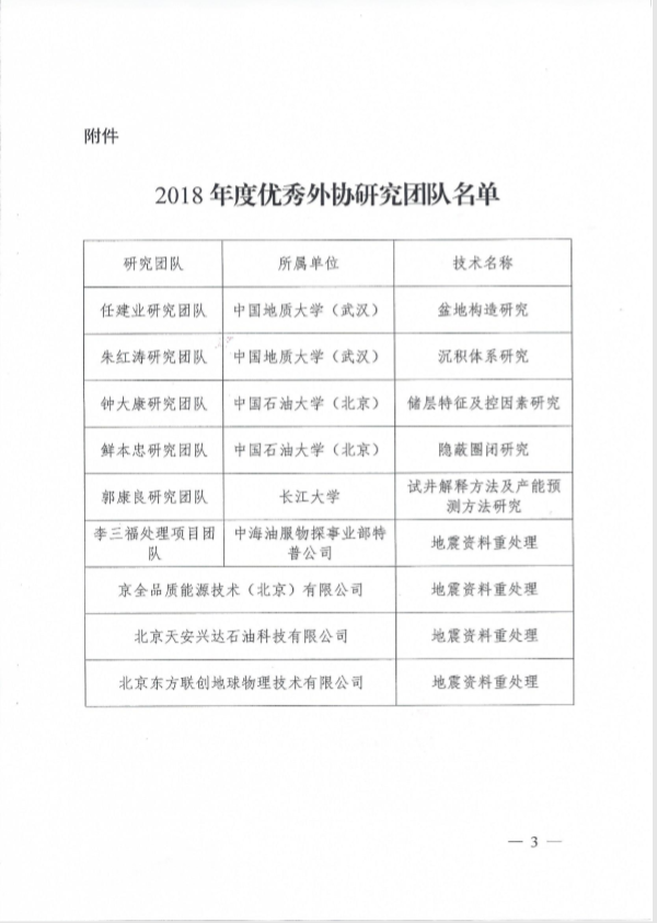 近日,中海石油(中国)有限公司发布通告,公司任建业教授研究团队获评勘探领域2018年优秀外协团队。