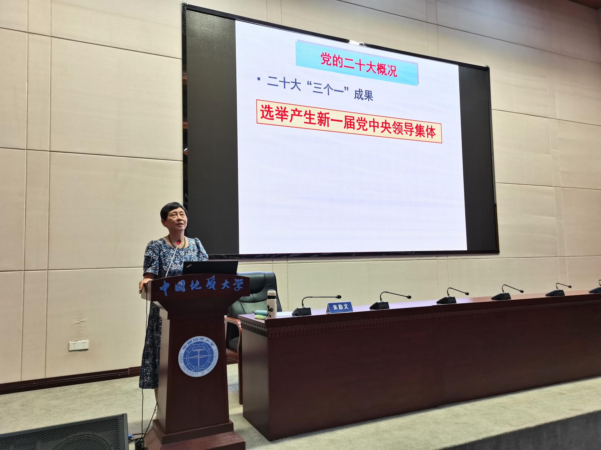 朱勤文教授以“学习贯彻党的二十大精神——从严治党落到高校员工党建”为题,带领大家回顾了党的二十大报告主体内容,重点比对分析了“十九大”与“二十大”主题内涵的异同,深入剖析了“中国式现代化”的科学内涵及本质要求,深刻阐述了党的二十大的历史地位与重大意义。朱勤文教授重点解读了“全面从严治党”的内涵。她表示,考验与危险长期存在,我党要始终坚持人民民主监督和自我革命,跳出治乱兴衰的历史周期率,时刻保持解决大党独有难题的清醒和坚定。