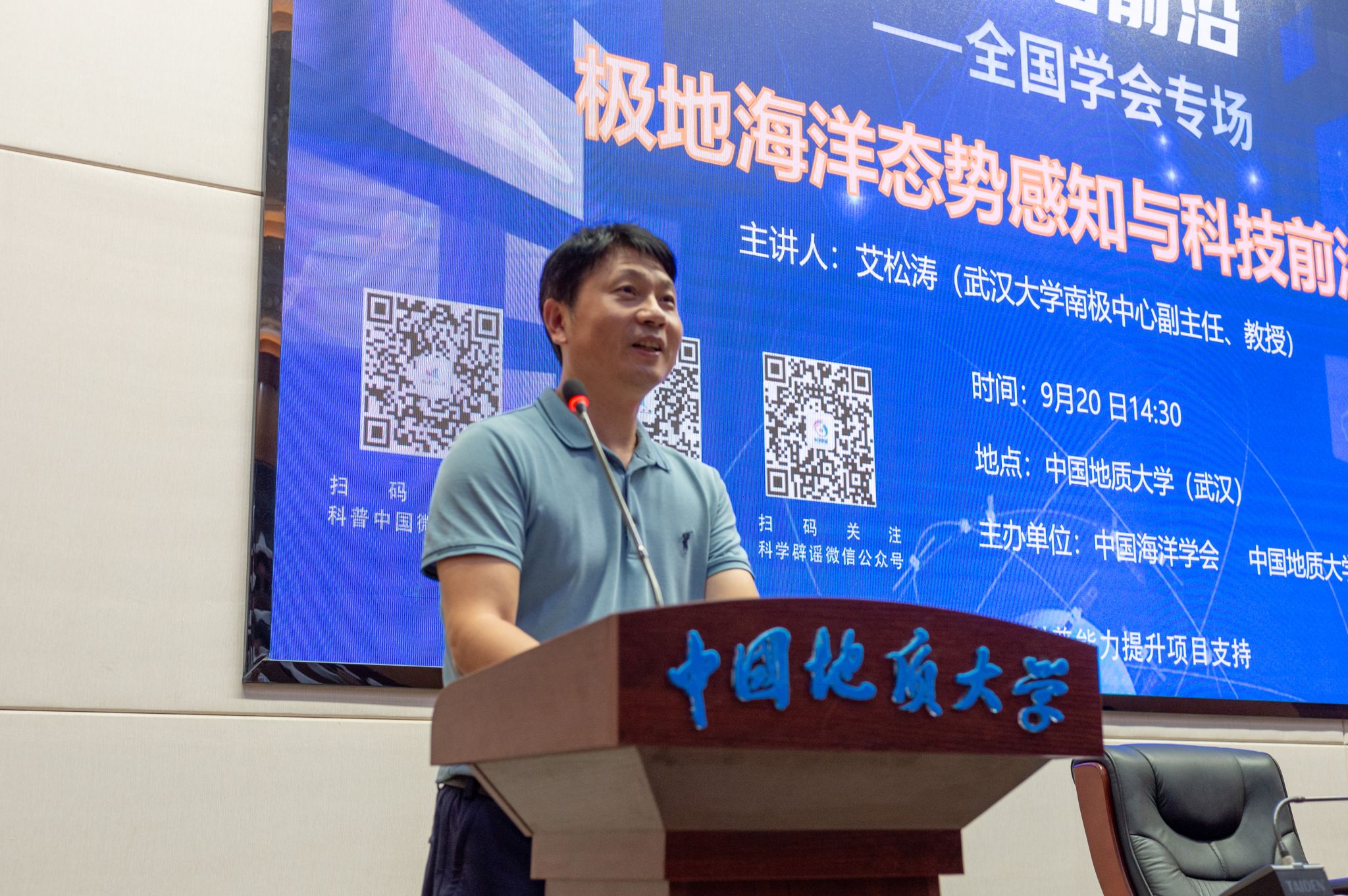 (通讯员李盼盼)以“提升全民科学素质,协力建设科技强国”为主题的2024年全国科普日活动正在火热进行中。为学习传承科学家精神、激发海洋学子对极地科考的兴趣,9月20日下午,w66旗舰厅官网(武汉)和中国海洋学会邀请中国南极测绘研究中心副主任、武汉大学艾松涛教授开展题为《极地海洋态势感知与科技前沿》的专题科普讲座。w66利来旗舰厅副经理陈刚、宫勋,陈波老师及w66利来旗舰厅本研员工参加。w66利来旗舰厅副经理陈刚教授代表公司全体师生对艾松涛教授的到来表示热烈欢迎,并简要介绍了艾松涛教授的科研及工作经历。