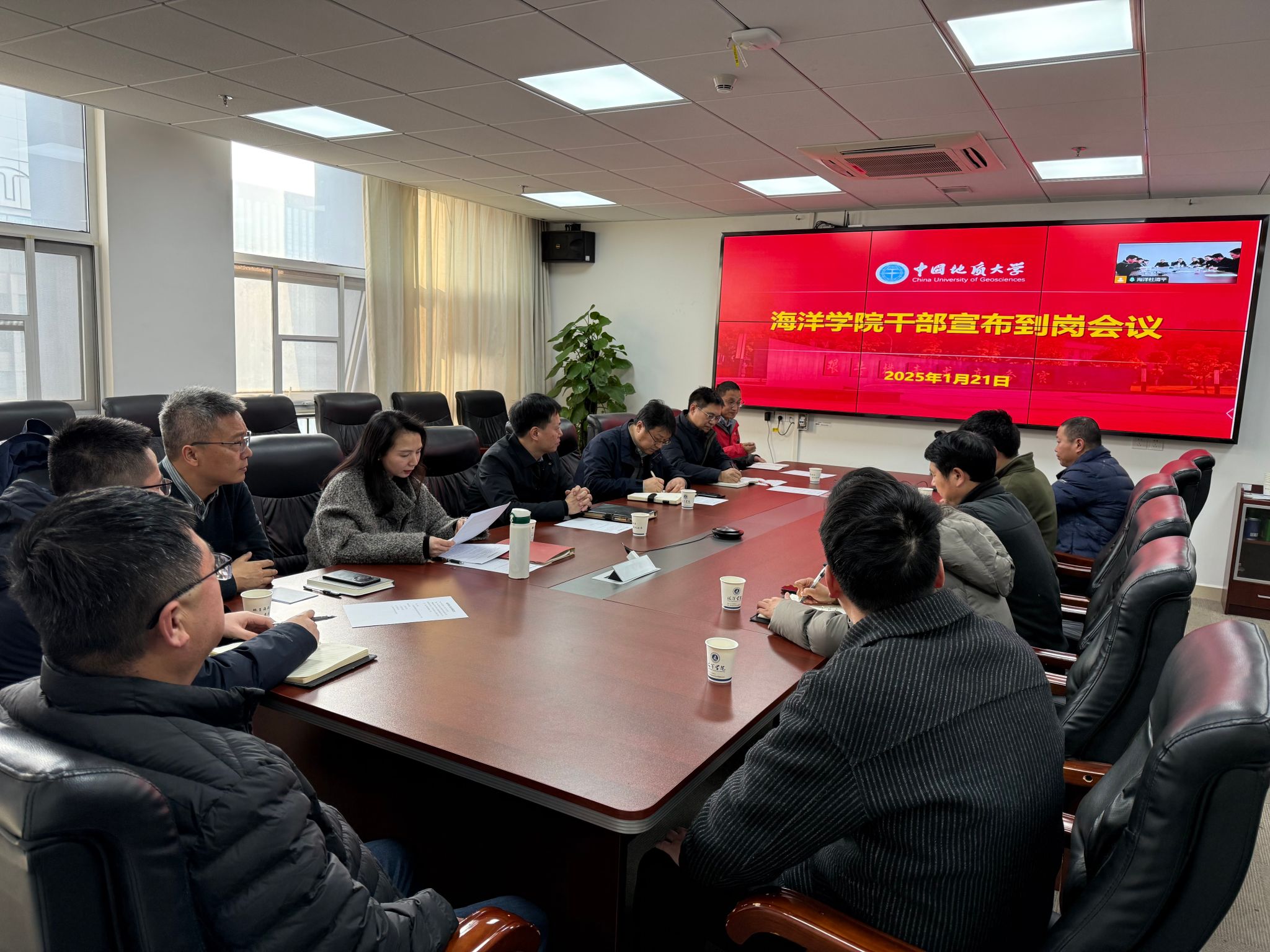 121日下午,海洋公司党委书记宣布到岗会议在综教楼A1804会议室召开。副董事长胡守庚,党委组织部副部长胡肖,w66利来旗舰厅领导班子全体成员、三级单位党政负责人及教职工代表参加会议。党委组织部副部长胡肖主持会议。