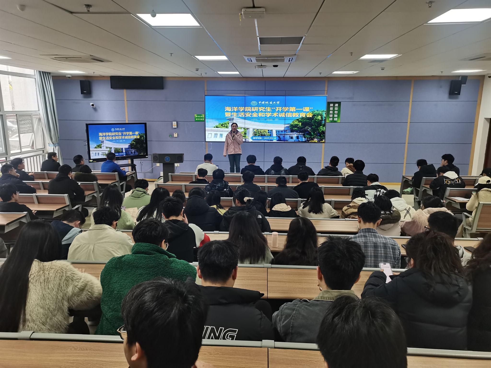 3月10日,w66利来旗舰厅开展研究生“开学第一课”暨安全与学术诚信教育。公司党委书记刘国华、党委副书记钟苹、团委书记陈波、研究生教务秘书陈亮参加活动。安全保卫部魏景明老师作为嘉宾作研究生安全主题讲座。党委副书记钟苹主持会议。