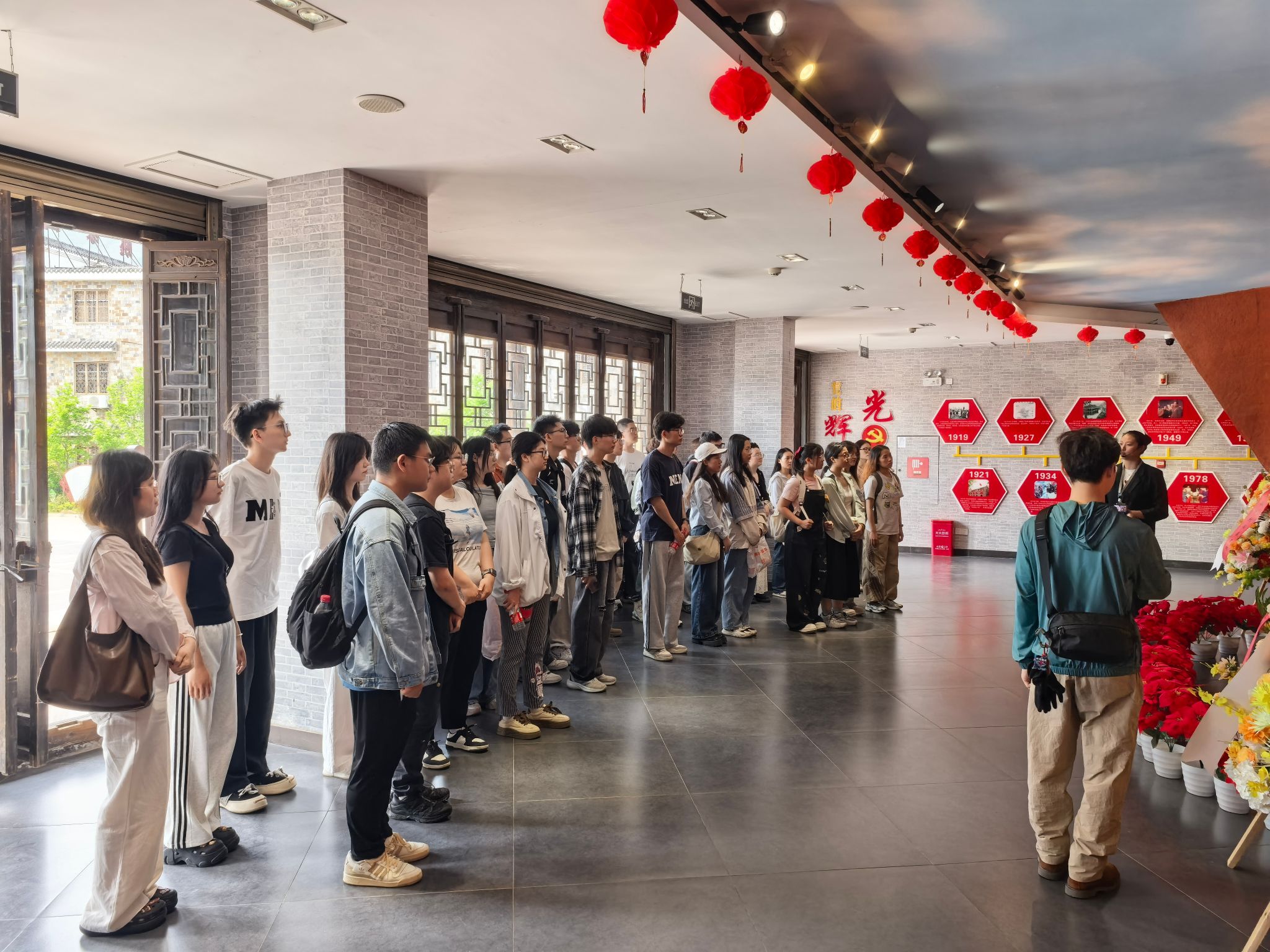 师生在新四军第五师历史陈列馆前合影