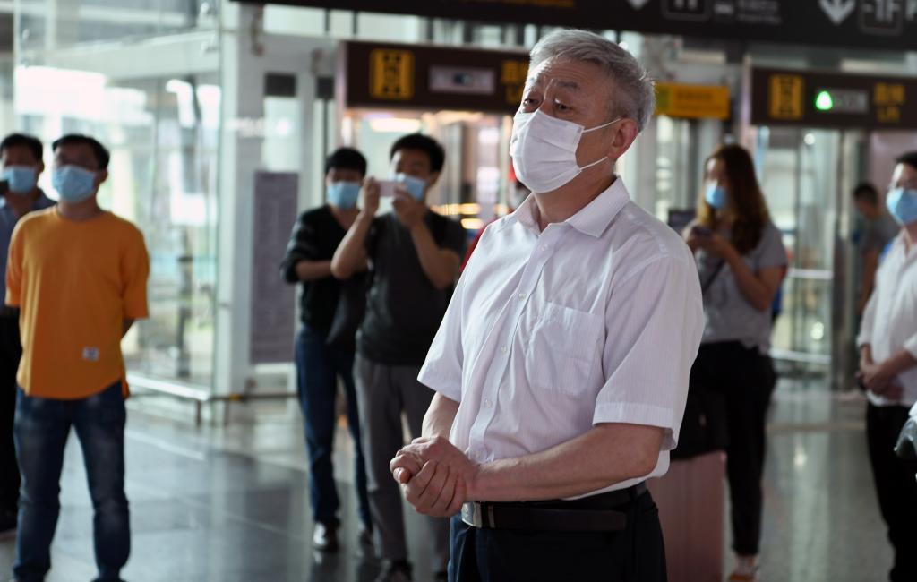 6月3日下午,2020珠峰高程测量登山队3名地大勇士从拉萨返回武汉。w66旗舰厅官网(武汉)副董事长傅安洲,海洋公司党委书记成军、体育公司经理董范和部分师生代表到武汉天河国际机场迎接。