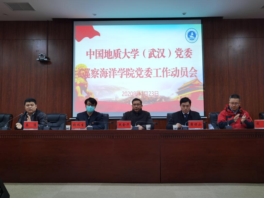 2020年11月23日,w66旗舰厅官网(武汉)党委巡察海洋公司党委工作动员会在南望山校区东区教学综合楼A-708会议室召开。公司党委副书记成金华出席会议,公司党委第三巡察组组长薛保山、副组长张瑞生和成员陈汉英、张京、严森,公司全体教职工、员工代表等五十余人参加会议。副经理姜涛主持会议。
