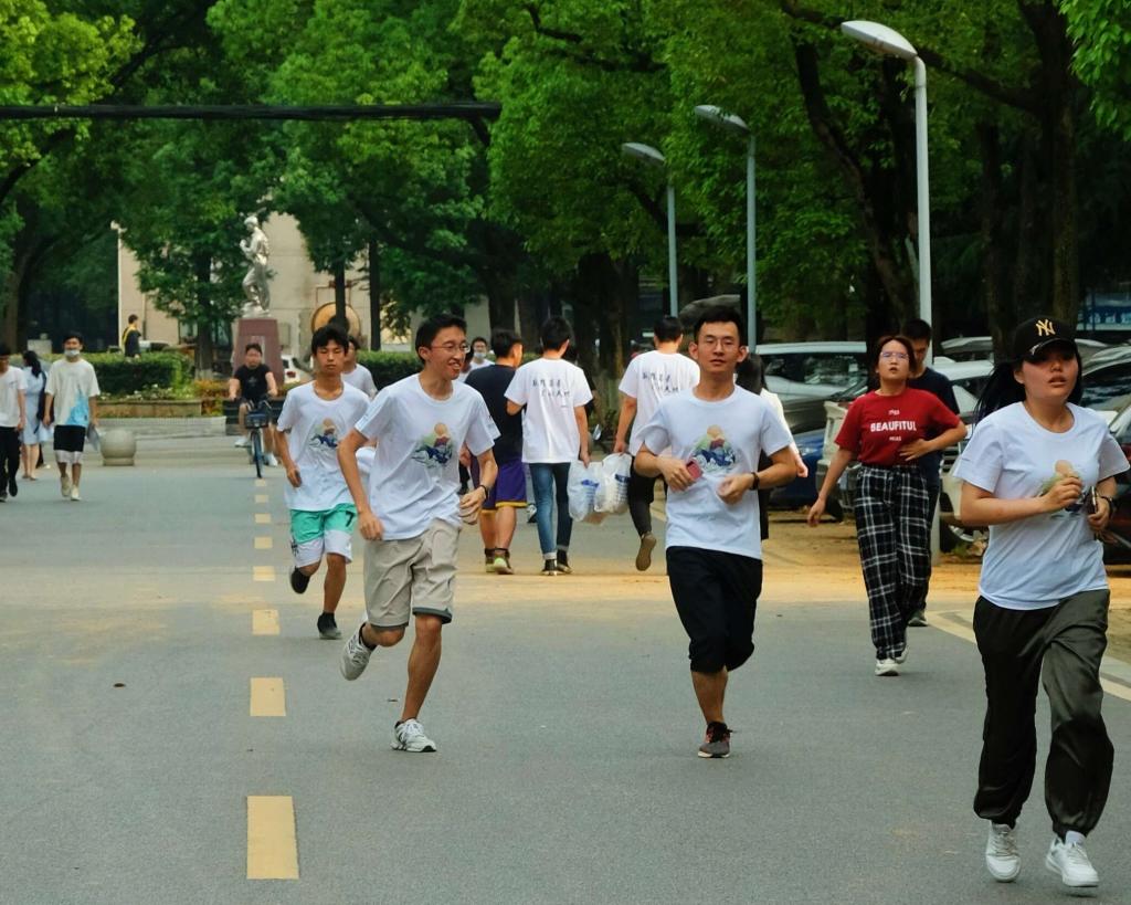 海洋公司党委书记成军表示,本次慢跑活动为非竞速类活动,各位同学慢跑活动中请注意安全。到四个打卡点完成海洋知识和党史答题后到出发点参加抽奖并领取精美纪念品。同时,2021年w66旗舰厅官网“HI YOUNG”杯海洋知识竞赛答题系统将于6月8日面向全体同学开放,欢迎各位同学登录系统并参加海洋知识竞赛。在成军书记宣布慢跑开始后,身着统一文化衫的慢跑队伍,从东区教学综合楼出发,沿着校园主干道,途径化石林、图书馆、体育馆等,完成约3公里的慢跑行程。