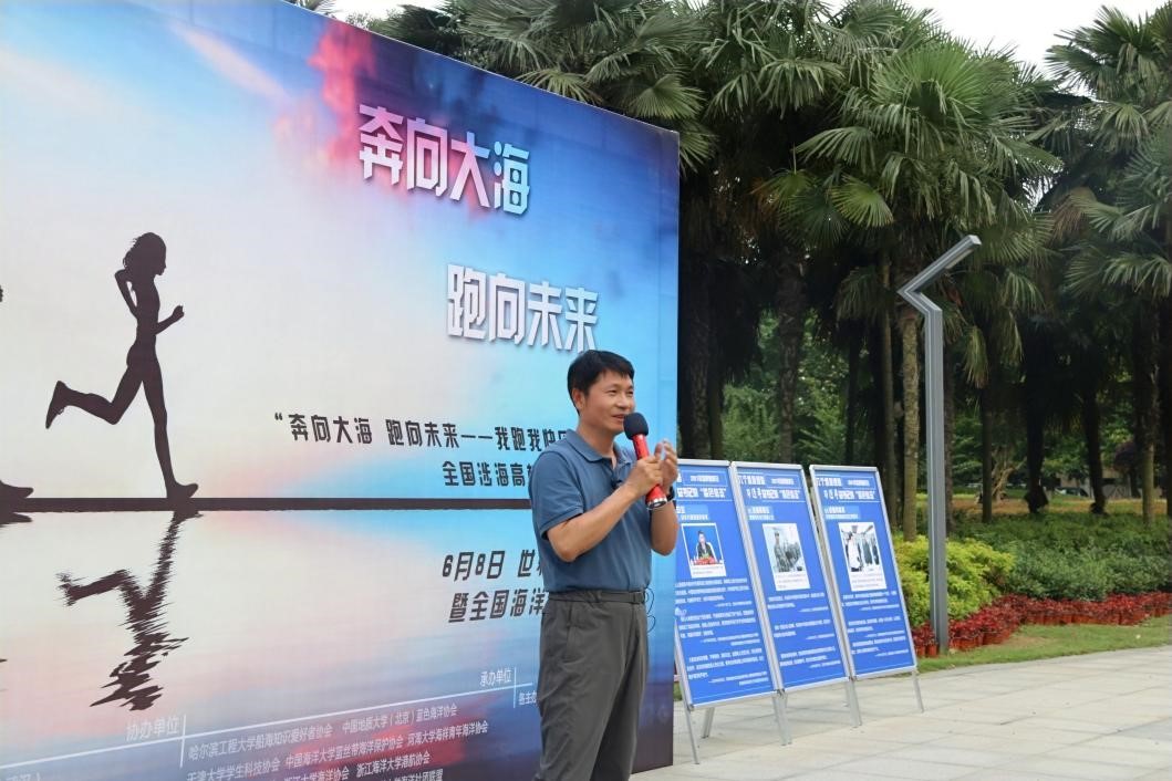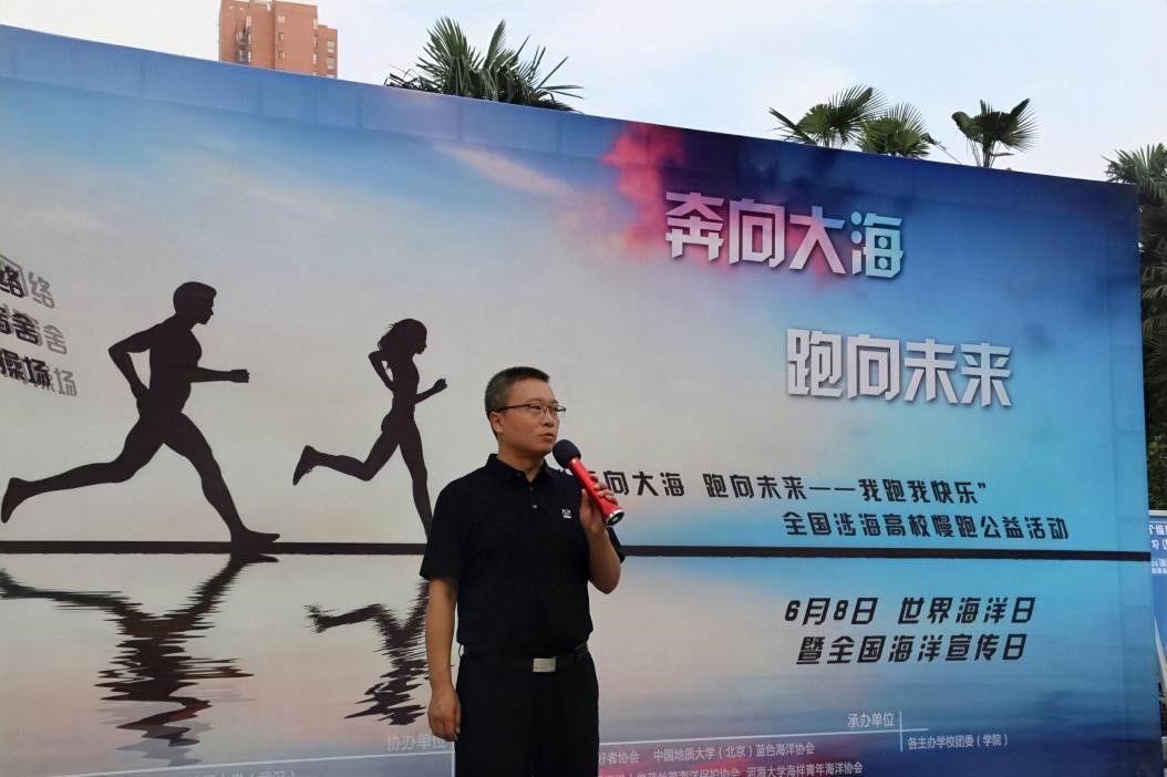 w66利来旗舰厅副经理、2020年湖北省荆楚好老师、2020年珠峰高程测量队员陈刚老师出席启动仪式并致辞。他表示,2021年6月8日是第十三个世界海洋日暨全国海洋宣传日,今年海洋日的主题是“保护海洋生物多样性,人与自然和谐共生”,旨在呼吁全社会在习近平海洋强国思想和生态文明思想的指引下,引导公众和老员工树立海洋强国和生态文明的理念。希望广大同学们能够以慢跑活动为契机,继续关心海洋、热爱海洋、经略海洋,学习海洋知识,在求知的海洋里遨游,为祖国海洋强国建设舔砖加瓦。