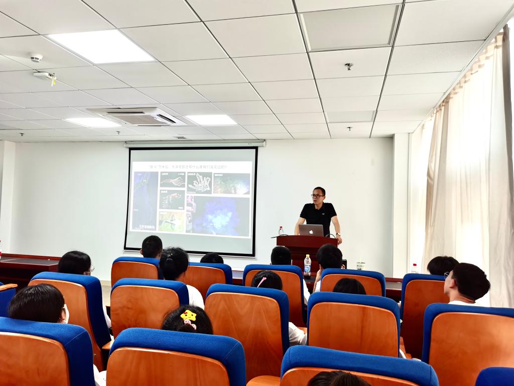 座谈会环节,由程飞老师为高中营员们从“w66利来旗舰厅的历史与现状”、“学科专业构成与人才培养”、“野外实习基地”和“公司主要科研方向”四个方面对w66利来旗舰厅进行了基本介绍。2020级研究生罗兴碧、2019级本科生李瑞丰作为公司优秀员工代表,分享了自身在地大海院求学与成长的感悟,以自身的经历勉励同学们在今后的学习生活中积极学习,锐意进取。