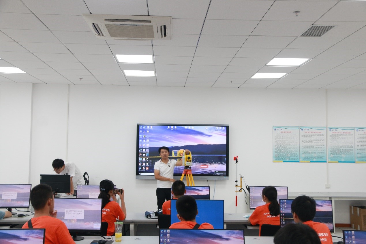 按公司科学营活动方案安排,“向海图强班”科学营的同学们一行走进海洋地质资源湖北省重点实验室,先后参观了地质年代、天然气水合物和地震地质综合解释室等实验室,由实验室人员为大家讲解和演示实验器材的操作。赵恩金教授结合专业在现实生活和国际热点事件中的应用案例,让同学们对洋工程与技术专业的研究意义有了直观的了解。随后在超能芳、赵恩金老师带领下,科学营的同学们深入流体力学、测量学教学实验室,开展伯努利方程实验测试、动手操作全站仪,零距离接触专业实践环节,体验海洋科技魅力。