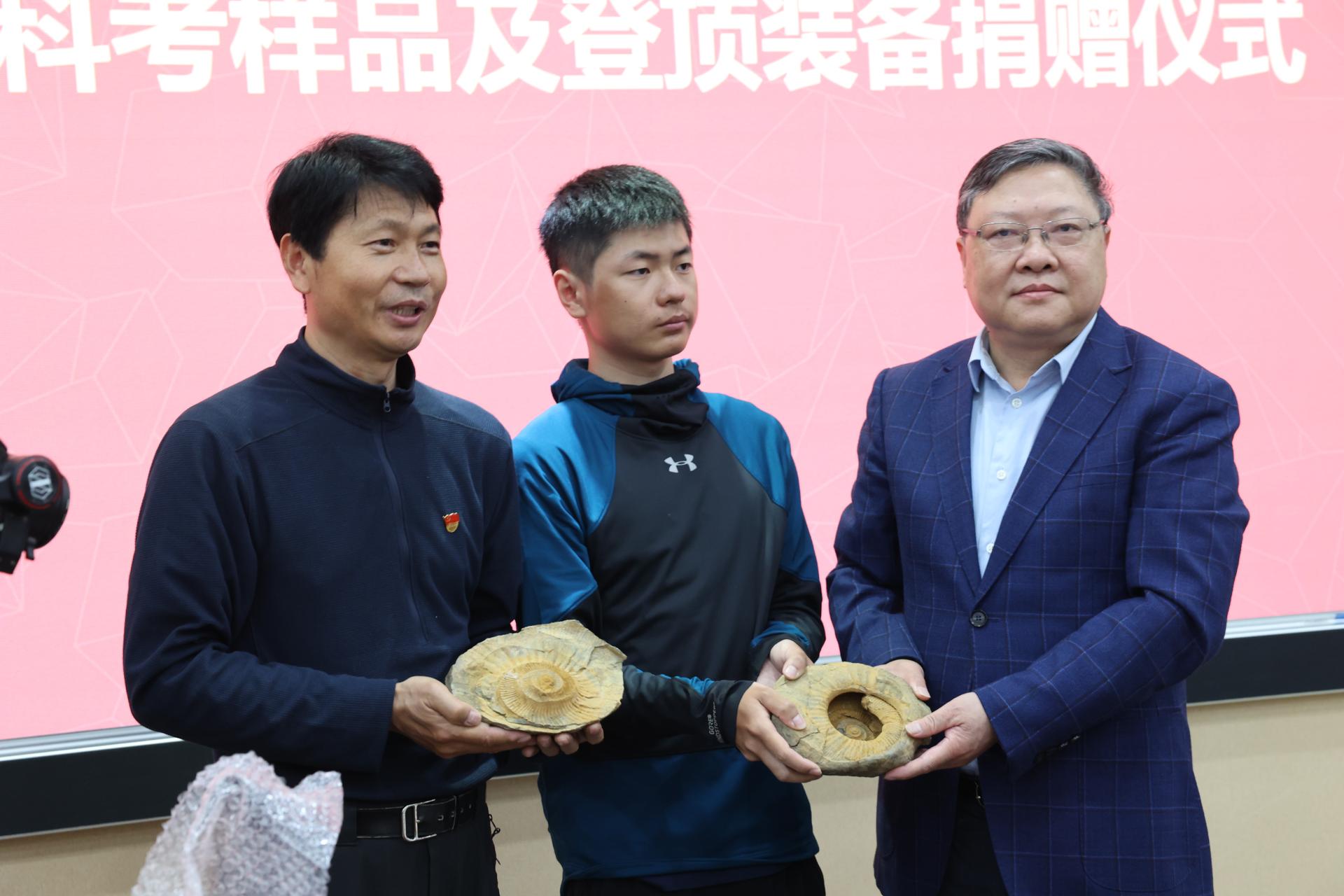 储祖旺代表公司接受陈刚教授珠峰科考登山捐赠物品。此次陈刚捐赠的物品包括珠峰科考标本样品7样、登顶珠峰纪念物品2类、攀登珠峰影像资料2类和登顶珠峰邮政纪念品1类。