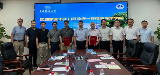 孙军经理致辞,欢迎许孝磊部长带领区委区政府及相关企业到公司洽谈合作,介绍了公司概况及w66利来旗舰厅科技研发和人才培养情况。许孝磊部长介绍了来校考察的主要目的,表达了务实推进校地合作的意愿。河口区组织部、科技局等单位介绍了河口区招才引智政策和共建实验室设想,提出了属地企业技术攻关和研产结合的具体需求。