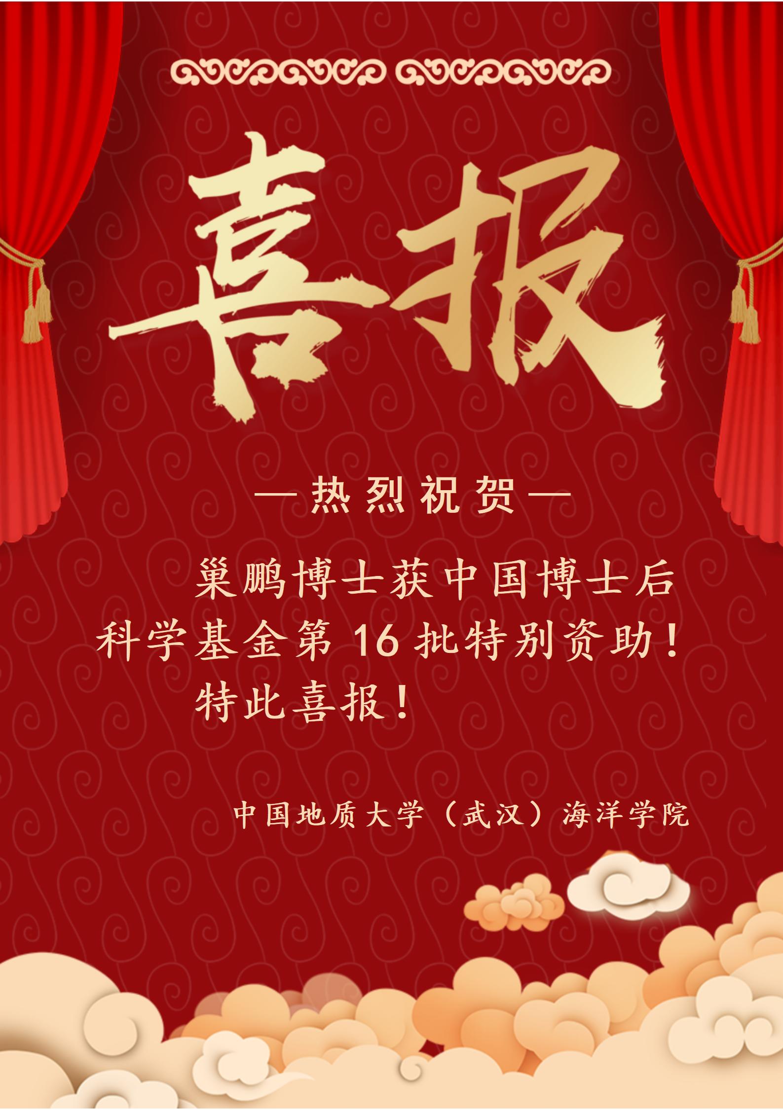 喜报!公司巢鹏博士获中国博士后科学基金第16批特别资助