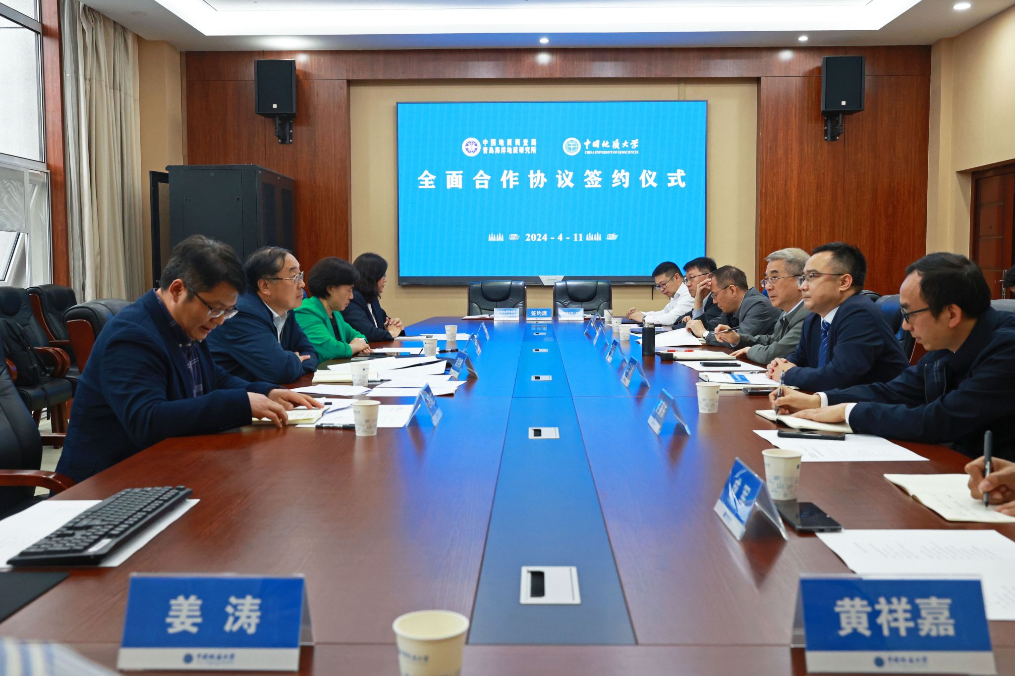 地大新闻网讯 (记者 孙彦钦)4月11日,公司与自然资源部中国地质调查局青岛海洋地质研究所签署战略合作协议。青岛海洋地质研究所所长、党委书记赵洪伟,副所长印萍,人事教育处处长白凤龙,科学技术处处长杨金玉;公司董事长王焰新院士,副董事长王力哲,相关单位负责人参加座谈交流。王力哲主持座谈。